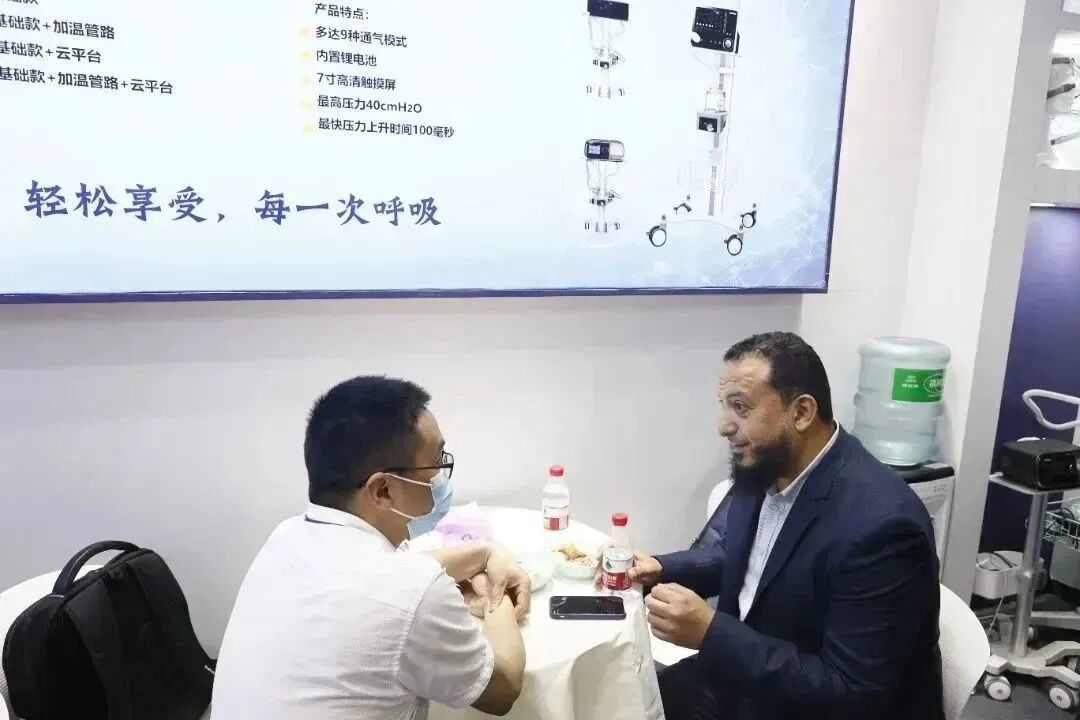 万脉医疗展台以独创的设计和品种丰富的产品吸引了众多参观者的目光。此次展会,万脉医疗由总经理刘哲带队,万脉呼吸机和睡眠监测仪受到国内外众多同行者的深度认可和喜爱!